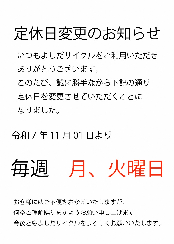 シティーサイクル車(ママチャリ等の一般車)の料金表になります。表記にない修理もしてますのでお気軽にご相談下さい。※その他のスポーツ車、子供用自転車、電動アシスト自転車等は価格が異なります。
